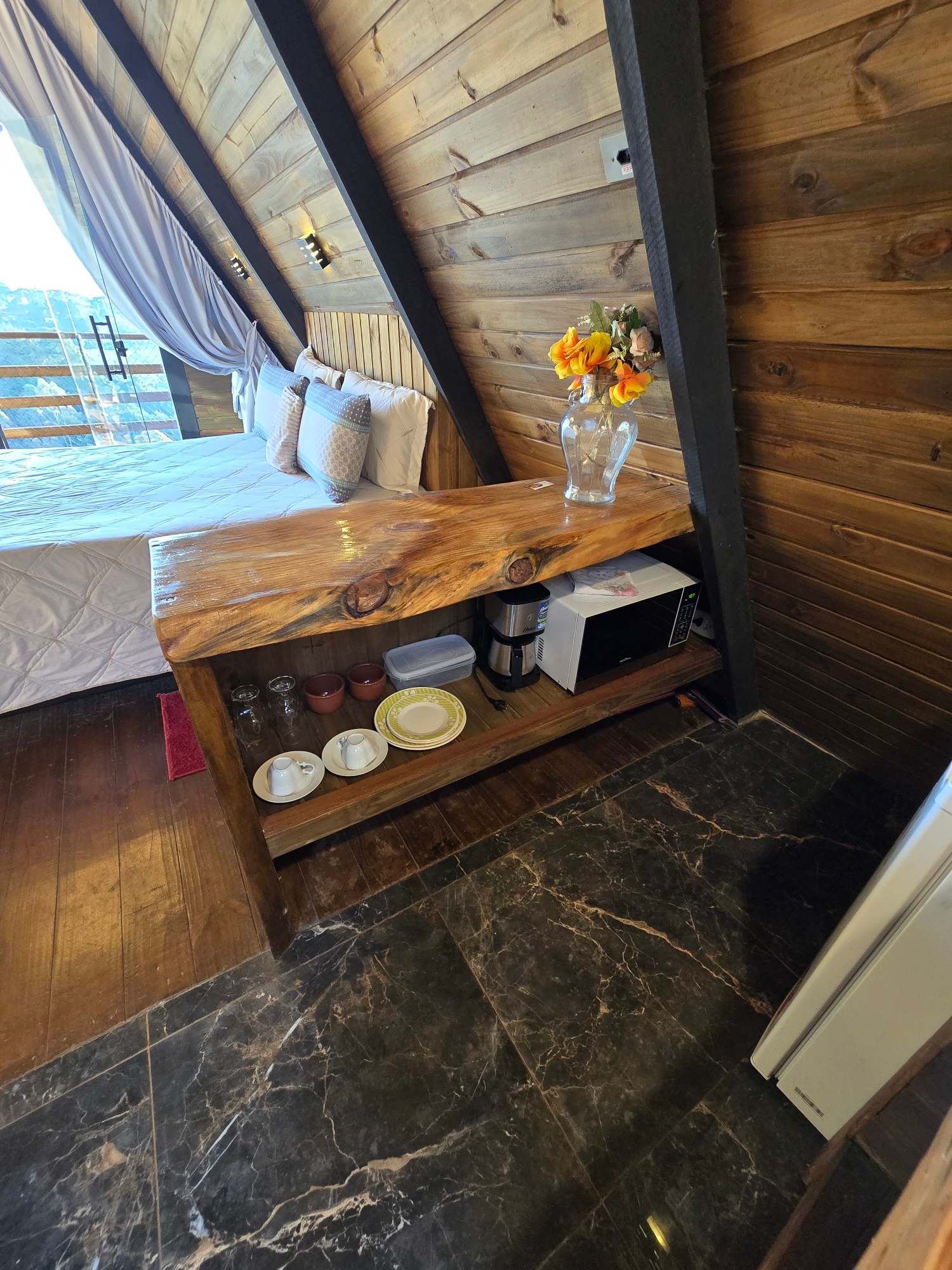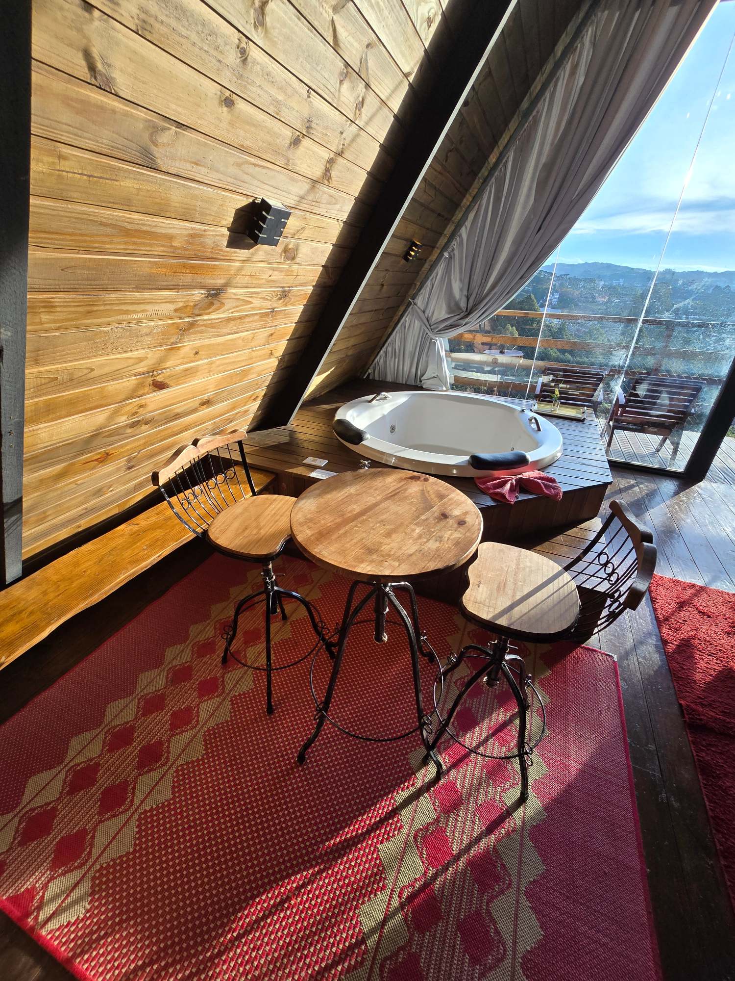 O Chalé Cristal é um refúgio perfeito para casais, acomodando até 2 adultos em um ambiente acolhedor e sofisticado. O quarto conta com WiFi e estacionamento cortesia, garantindo praticidade durante sua estadia. Equipado com uma SmartTV e aquecedor, o espaço oferece conforto em qualquer clima. Desfrute de momentos relaxantes na banheira de hidromassagem ou prepare refeições rápidas com a cafeteira, sanduicheira grill, frigobar e micro-ondas disponÃveis. A varanda é ideal para apreciar a vista ao ar livre, eR$ 330 por noite -